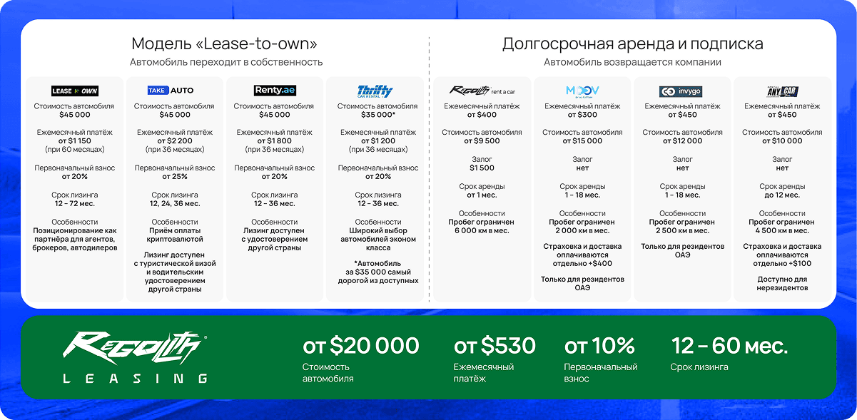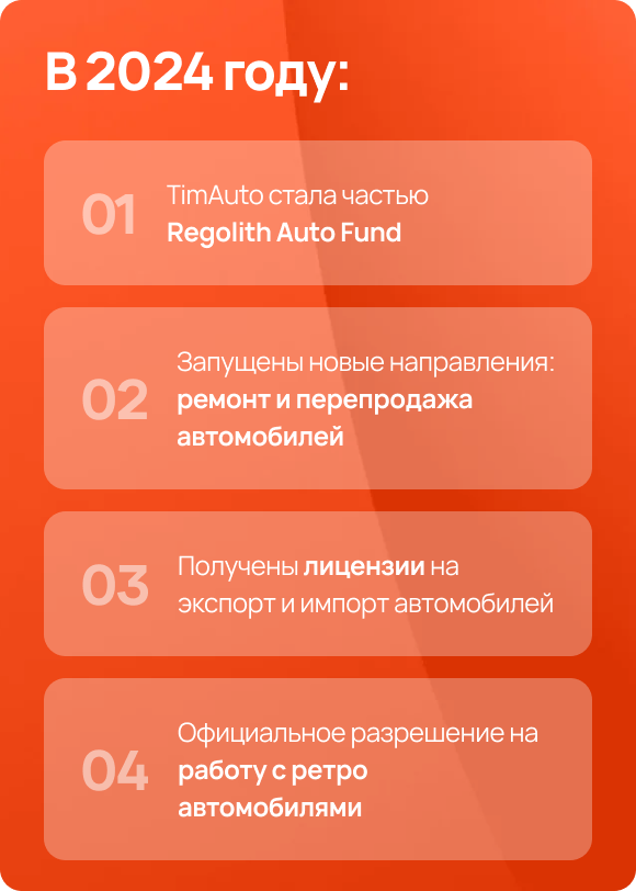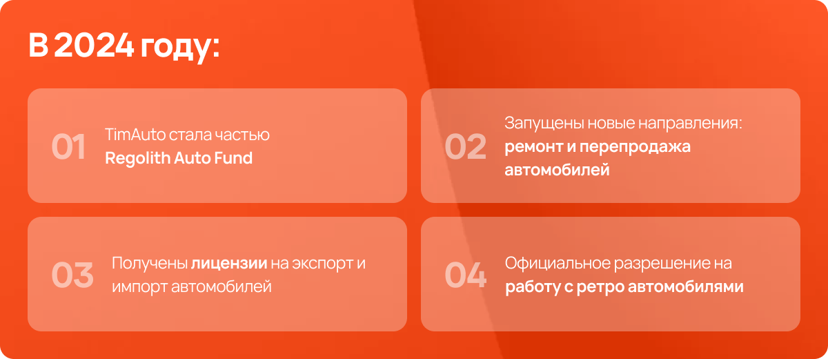 Команда Regolith работает в ОАЭ с 2022 года, под брендом TimAuto. Первым направлением деятельности стала долгосрочная аренда автомобилей.