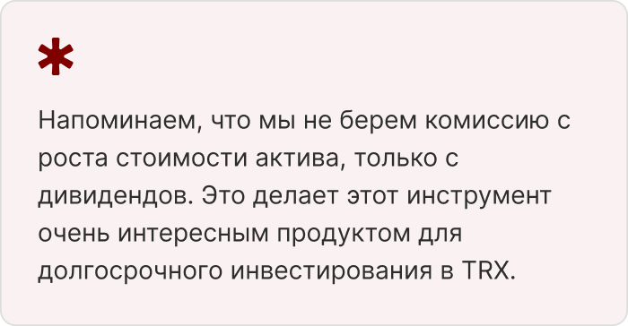 • При росте стоимости TRX комиссия из прибыли - 0%.